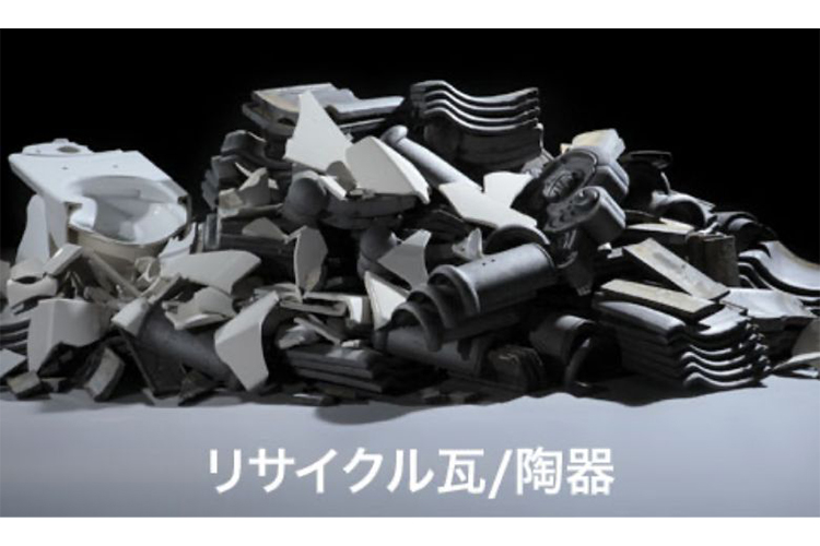 主な骨材には、廃瓦や陶器片を破砕して使用。これをプライマー処理後アクリル樹脂と混ぜ、塗布して、防滑効果を高めます。リサイクル品を採用したエコロジー商品です。