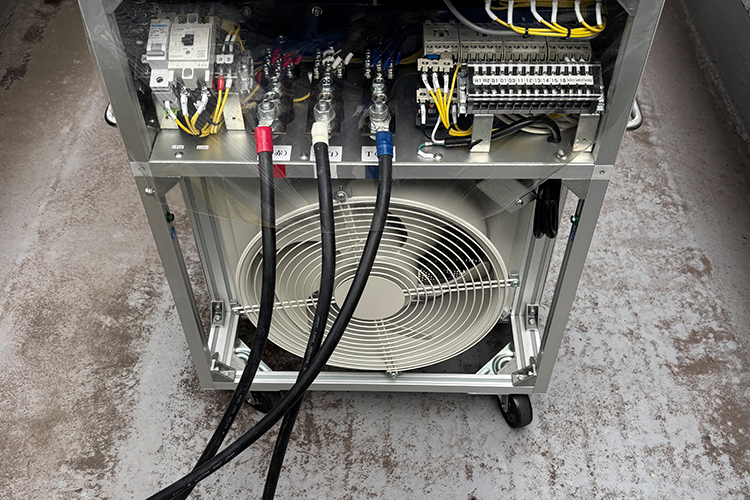 疑似負荷試験とは、非常用発電機の負荷系統を専用の負荷試験装置につなげ、負荷をかけて性能を確認する点検方法です。